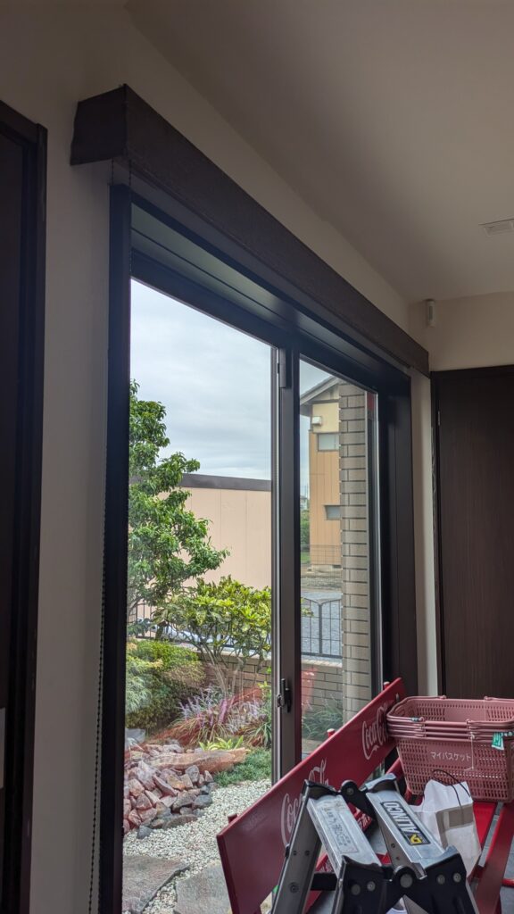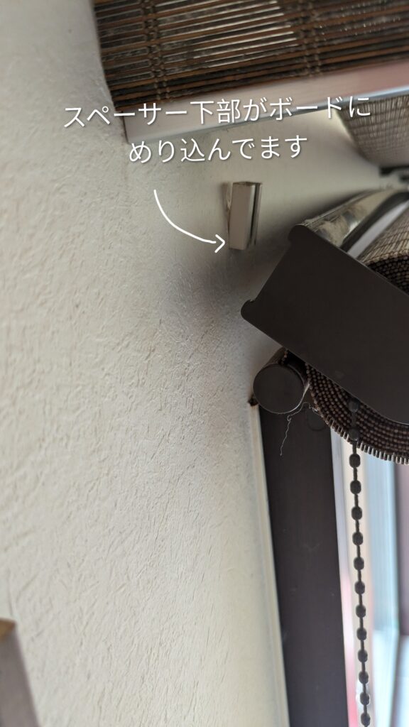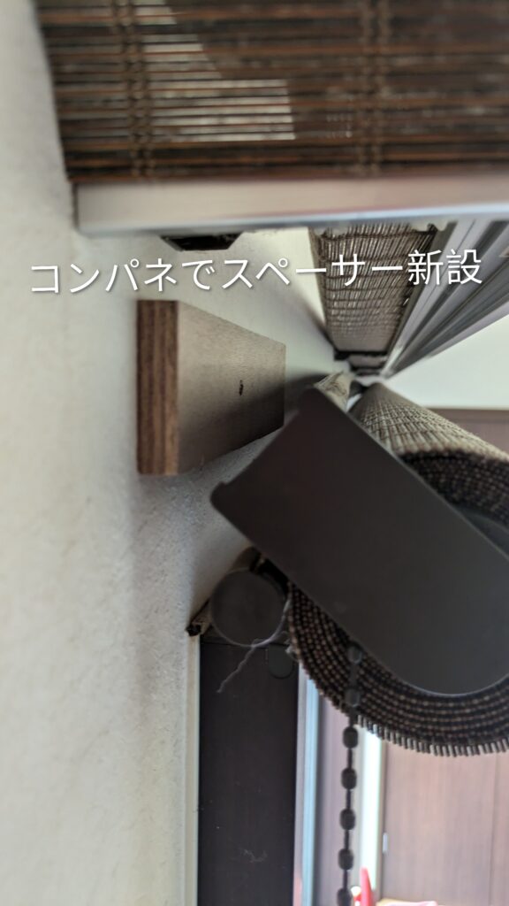 窓枠が30㎜くらい出てたのでスペーサーで10㎜ふかして取付けてあります。