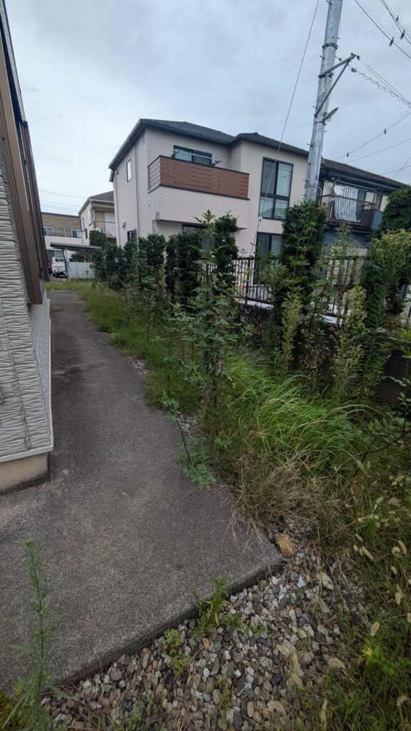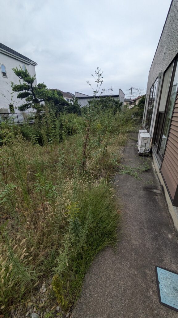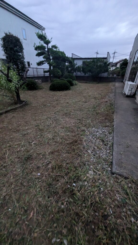 敷地全体の雑草をひと通り綺麗にさせていただいて、最後に除草剤を散布して仕上げさせていただきました。