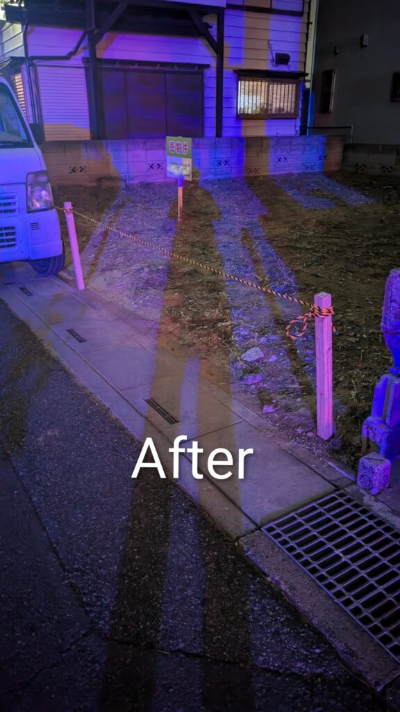 ④先日草刈りした売地にロープを張って欲しいとのご依頼。