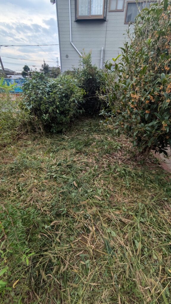普段住んでいないご実家の草刈りで、処分無しで刈るだけで良いとのことで、約1時間の作業です。