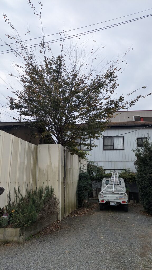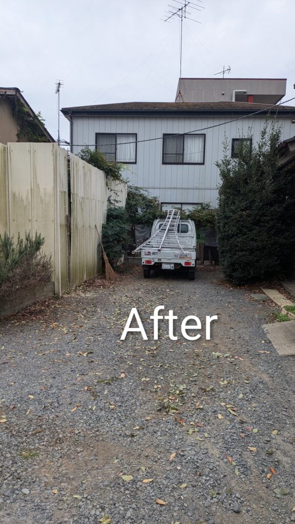 左側の塀の手前も奥も同じ大家さんの物件で、ご依頼主は手前の借主様。