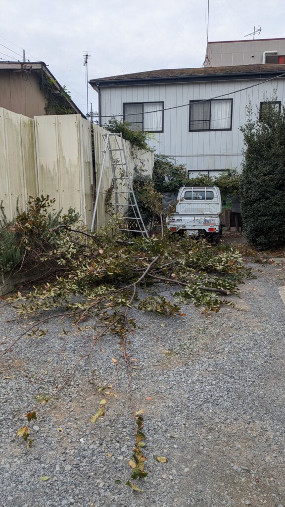 切った木も敷地の隅に置いておいてというので、細かく切ってまとめておきました♪