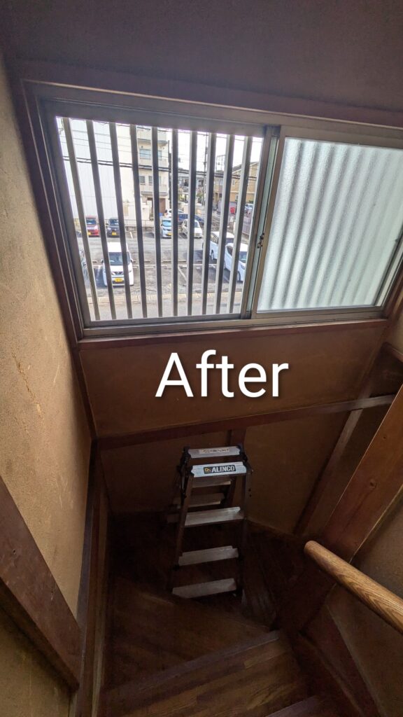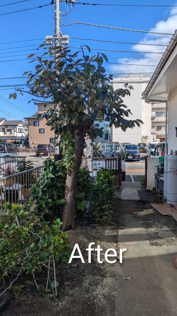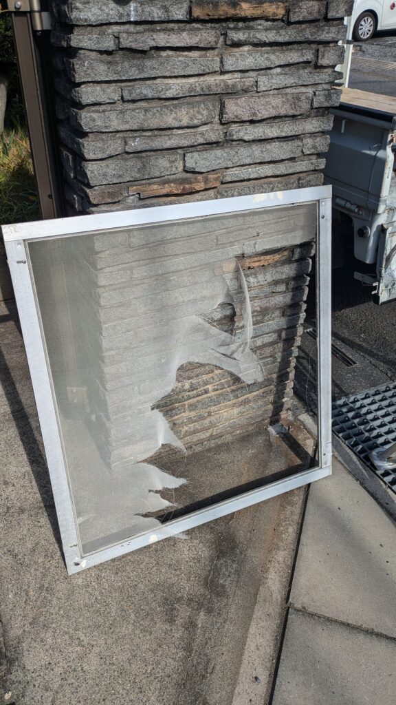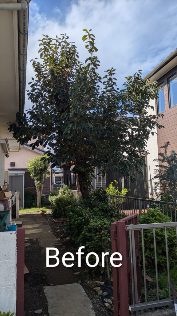 ③リピーター様から階段の網戸張り替えと柿の木の剪定です。