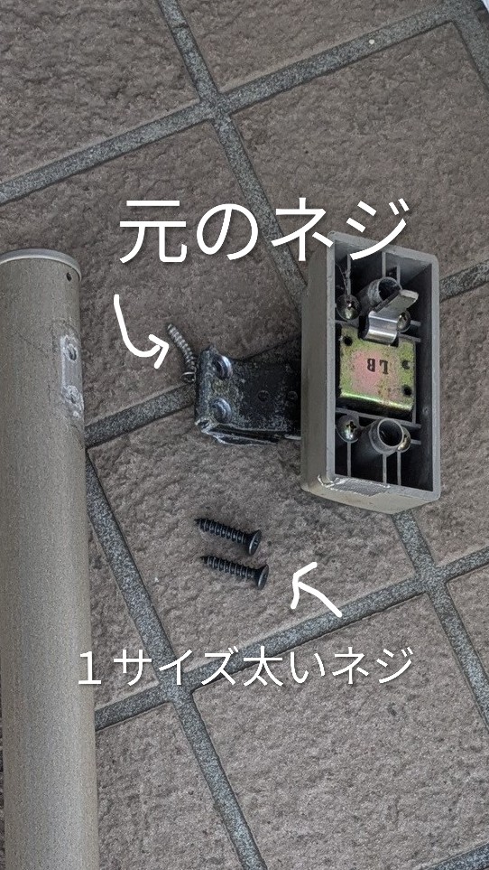 握り棒を留めているネジは木ネジタイプだったので、同じサイズのネジだと効きません。