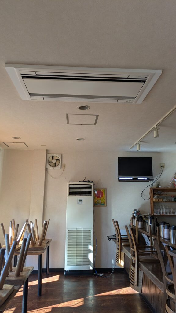 コチラの店舗様はシッカリと機器の入れ替えをされていて、2方向も置き型も比較的新しい型の物で、ファンが天カセ4方向の様なタイプでした。