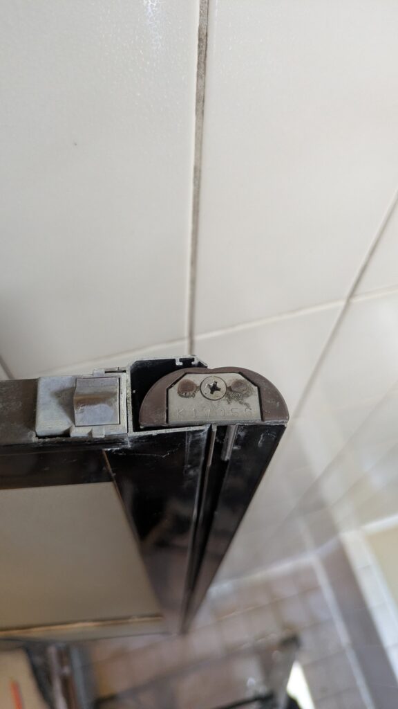 二つ折れドアのセンターのヒンジ部分は扉の上下でハメコミなんですが、下側がすり減って外れちゃってました。