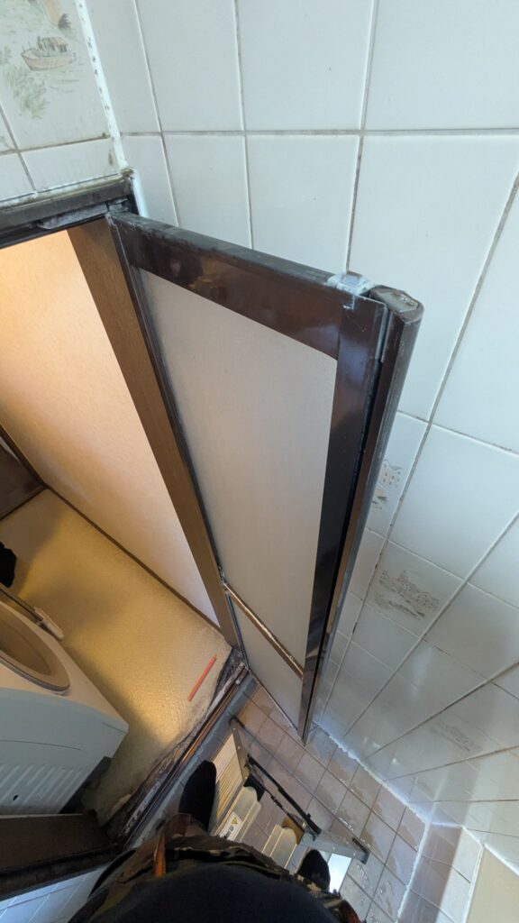 新規のお客様から、お風呂のドアを直して欲しいと…。