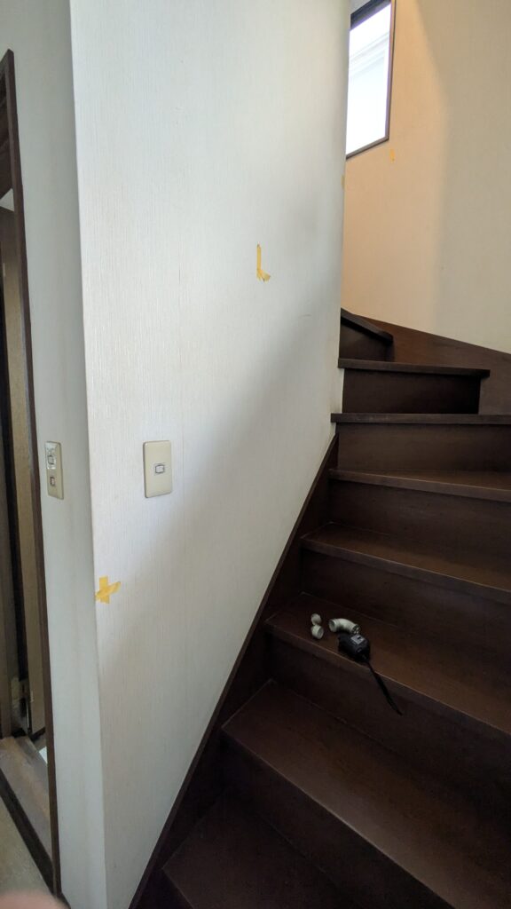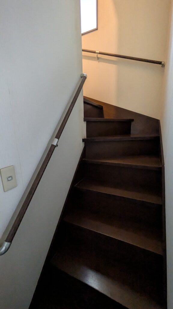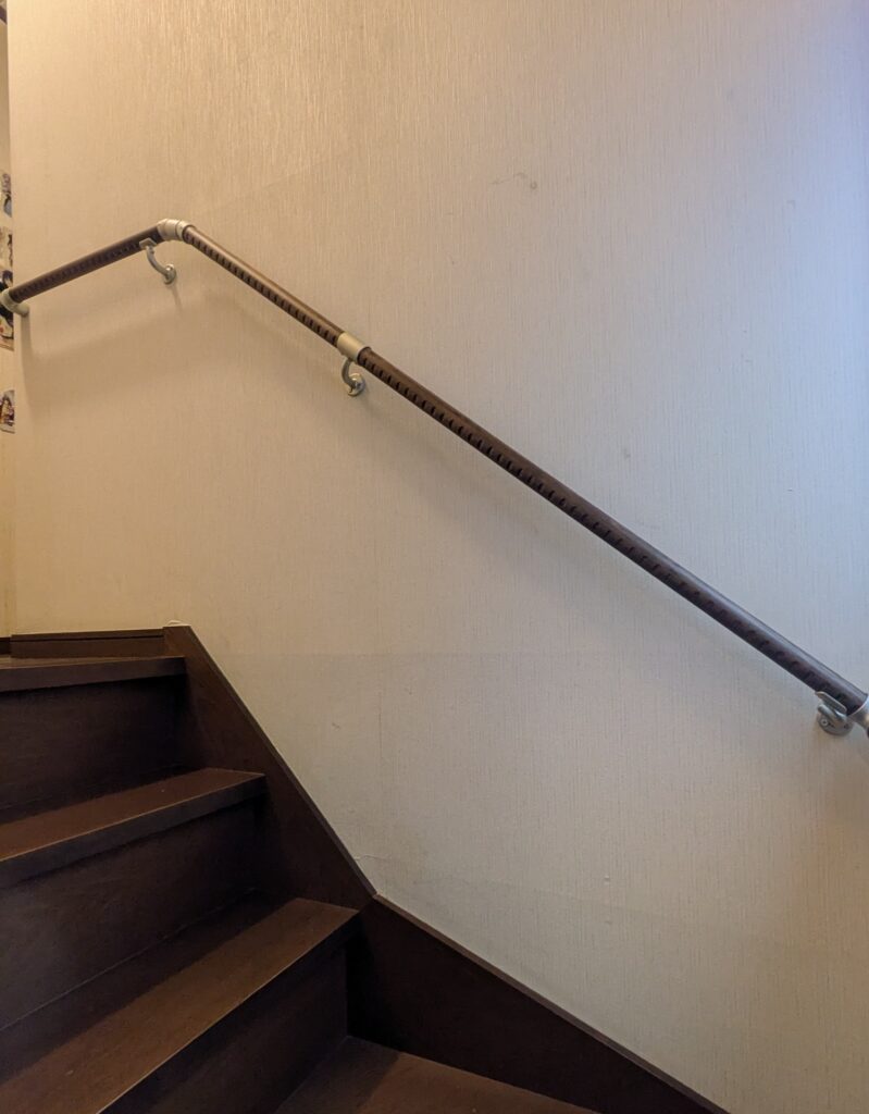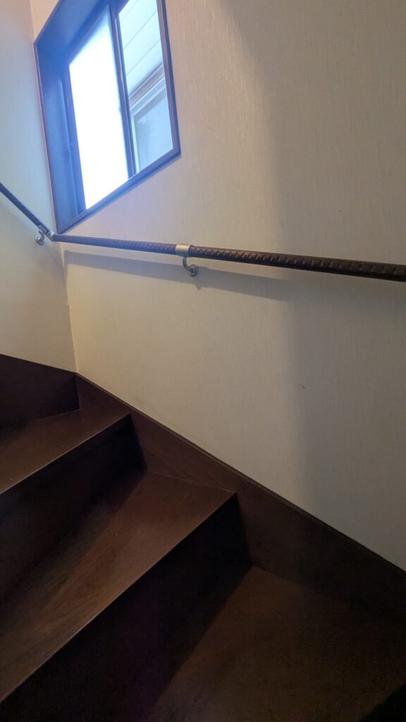 階段の手すりを取り付けながら、『ぃ〜〜もう1個プラケット余分に買っとけばよかった〜』と頭を悩ませましたが、うまくやりくりしてキレイめに纏めました♪
