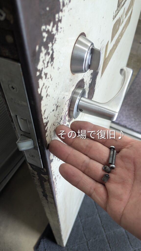 巨大な物流センターの通用口の扉のレバーがグラグラでした。