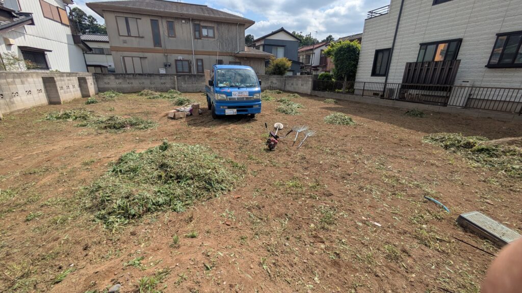 いつもの不動産会社様から草刈り&防草シート施工のご依頼です。
