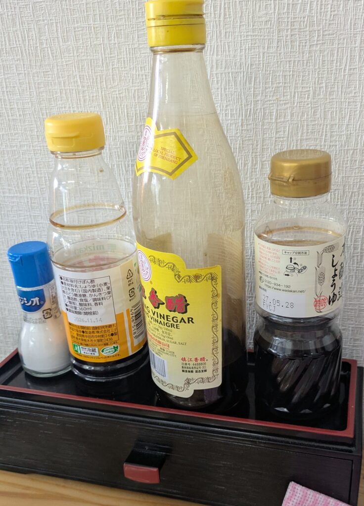 中国の人は水餃子は黒酢で召し上がるので、僕らも黒酢でいただきます(^^)