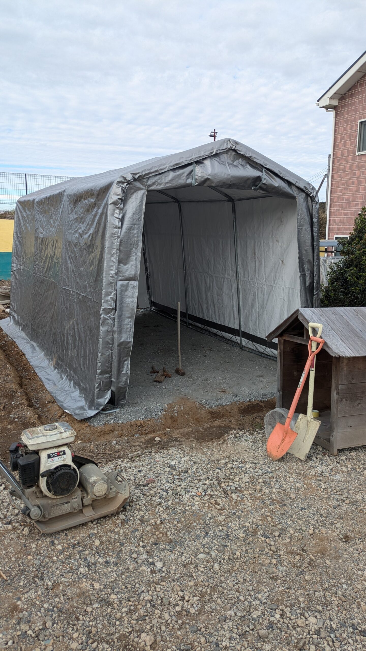 色々と物が増えたので、自宅に倉庫代わりの車庫を設置しました。 とはいえ、ウチの敷地は全体が緩〜い斜面なので大変です。 手作業で平らにして、砂利を敷いて固めます。※ランマー初めて使いましたよ(笑) 砂利は自宅の隣が土建屋さ […]